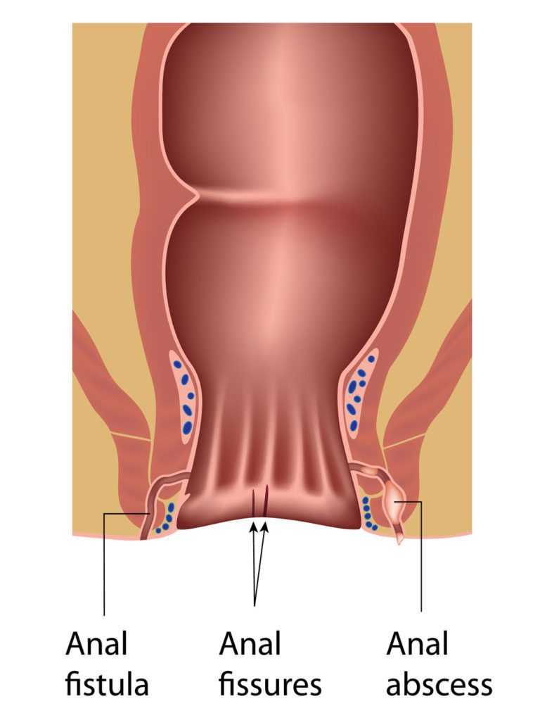 Small glands just inside the anus are part of normal anatomy. If the glands in the anus become clogged, it may result in an Infection. Local infection can further lead to formation of abscess. Bacteria, feces, or foreign matter can also clog the anal glands and cause an abscess to form. Crohn’s disease, cancer, trauma and radiation can increase the risk of infections and fistulas.